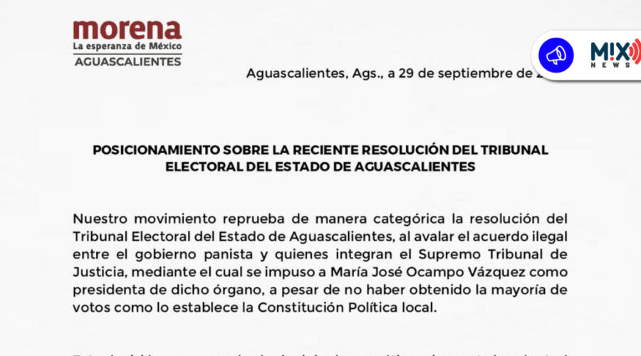 Frida Fonseca QuezadaAguascalientes, Ags.– Morena en Aguascalientes rechazó la reciente resolución del Tribunal Electoral del Estado, que avaló la designación de María José Ocampo Vázquez …
