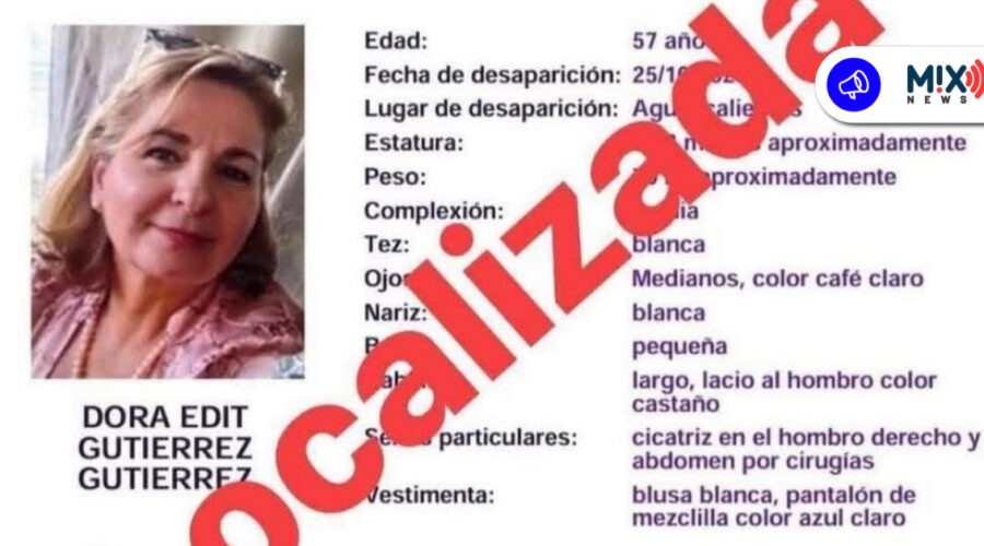 Aguascalientes, Ags.- La Fiscalía General del Estado confirmó que Dora Edith Gutiérrez Gutiérrez fue localizada con vida luego de haber sido reportada como desaparecida. Las …