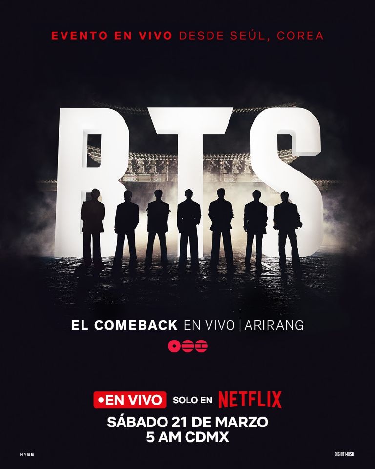 El esperado comeback global llegará el 21 de marzo de 2026 a las 8:00 PM (hora de Corea del Sur). En México, los fans tendrán que madrugar para verlo, ya que la transmisión comenzará aproximadamente a las 5:00 de la mañana a través de Netflix.