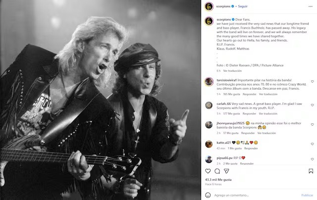 Tras confirmarse su fallecimiento, los integrantes actuales de Scorpions —Klaus Meine, Rudolf Schenker y Matthias Jabs— publicaron un mensaje de despedida en Instagram, destacando la huella imborrable que dejó Buchholz en la historia del grupo y enviando sus condolencias a la familia en este momento difícil.