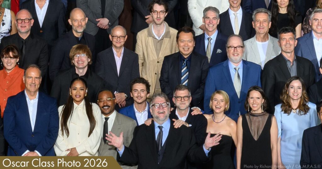 Uno de los momentos más esperados fue la clásica “foto de clase”, la postal anual que reúne a todos los nominados en una sola imagen. Ese retrato ya es tradición en Hollywood: una constelación de estrellas y futuros ganadores posando hombro con hombro. Este año incluyó nombres como Jessie Buckley, Chalamet, Stone, además de cineastas clave como Ryan Coogler y Wagner Moura.