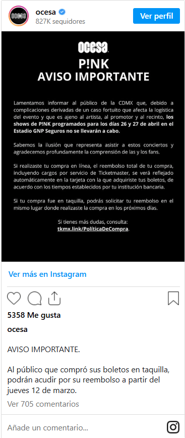 Hasta ahora, Pink no ha emitido un mensaje dirigido específicamente a sus seguidores mexicanos tras la cancelación de los conciertos, lo que ha incrementado la incertidumbre entre quienes esperaban verla en vivo en la capital del país.
