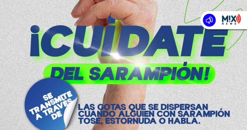 Explicó que el sarampión se transmite fácilmente a través de las gotas de saliva que se dispersan cuando una persona tose, estornuda o incluso habla, las cuales pueden permanecer en el aire o en superficies contaminadas.