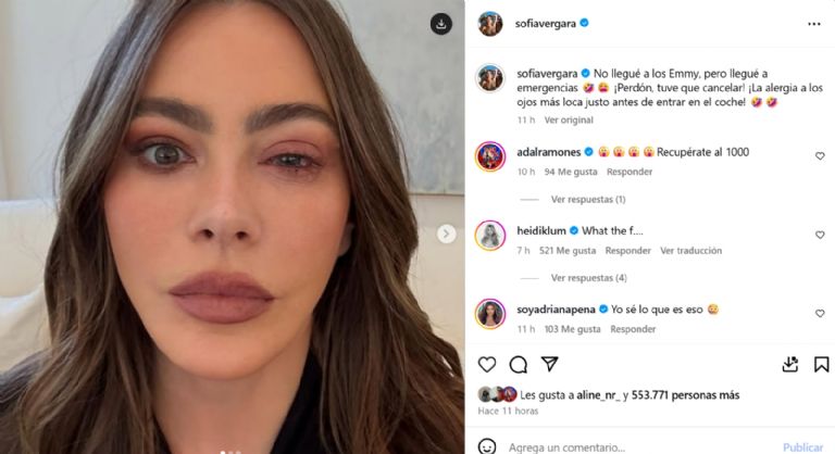 Horas antes de pisar la alfombra roja, Sofía sufrió una reacción alérgica fulminante en el ojo derecho, que no solo la dejó con el rostro visiblemente inflamado, sino que también le impidió siquiera salir de casa. En lugar del escenario de Hollywood, la protagonista de Modern Family terminó en una sala de emergencias intentando calmar la hinchazón.