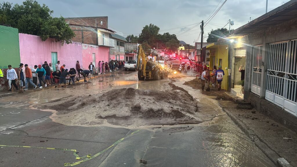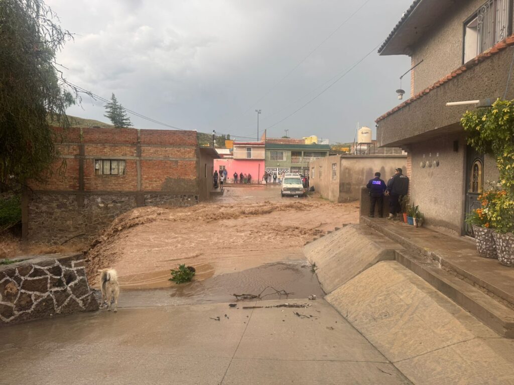 Asientos, Ags.- Desde la zona afectada por la lluvia de este miércoles en el arroyo de piedras Negra de Real de Asientos, el alcalde José Manuel González Mota confirmó que no hubo daños humanos, solo daños materiales en 8 viviendas en que ingreso el agua; 5 bardas caídas, 7 vehículos dañados por el alto nivel que alcanzó el agua.